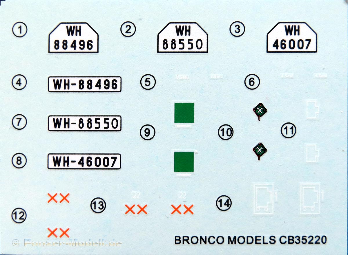 Alle Teile sind, wie bei Bronco üblich, sauber gespritzt, ohne Sinkstellen, Versatz, Fischhäute oder nennenswerten Grat. Einige Auswerferspuren sind zu finden, die sich zumeist an verdeckten Stellen befinden.