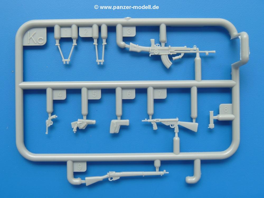 - Spritzling Kc (3x): Bren Maschinengewehr, 2-Bein (aufgespreizt und zusammengelegt), Karabiner, Revolver, Revolver in Tasche, Pistolentasche, Maschinenpistole, Magazin
