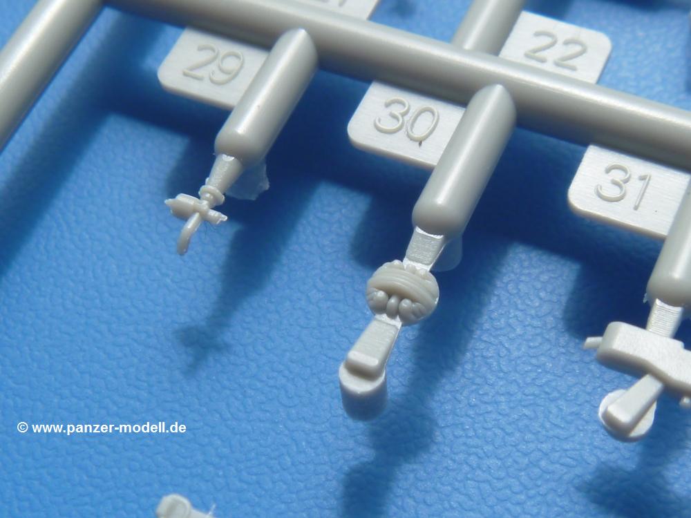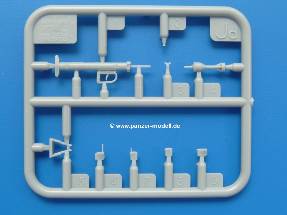 Alle Teile sind sauber gespritzt, ohne Fischhäute oder Grat. Bronco bleibt sich treu, wenn es um die Filigranität und Winzigkeit mancher Teile geht. Hier ist äußerste Vorsicht beim Abtrennen vom Spritzling empfohlen. Details kommen wie bereits gewöhnt gestochen scharf zur Geltung.