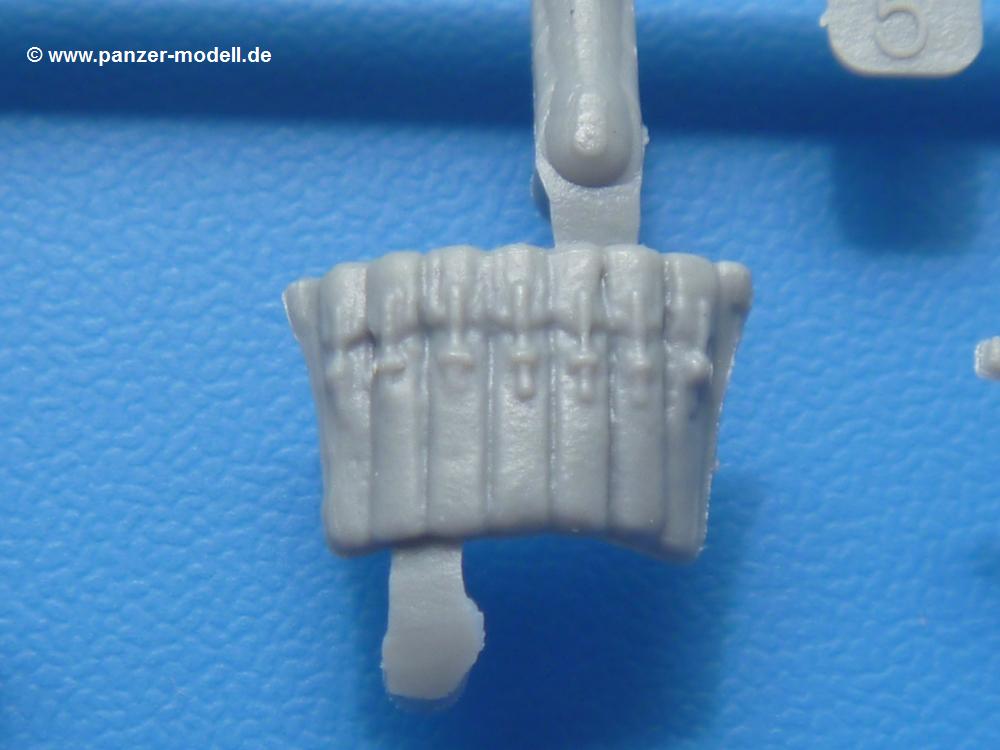 Die 3 PIAT Munitionsbehälter bestehen aus je einem Teil. Nach dem Abtrennen vom Spritzling braucht man nur noch versäubern und bemalen und 3 Decals anbringen. Es sind aber nur Decals für einen Behälter dabei.