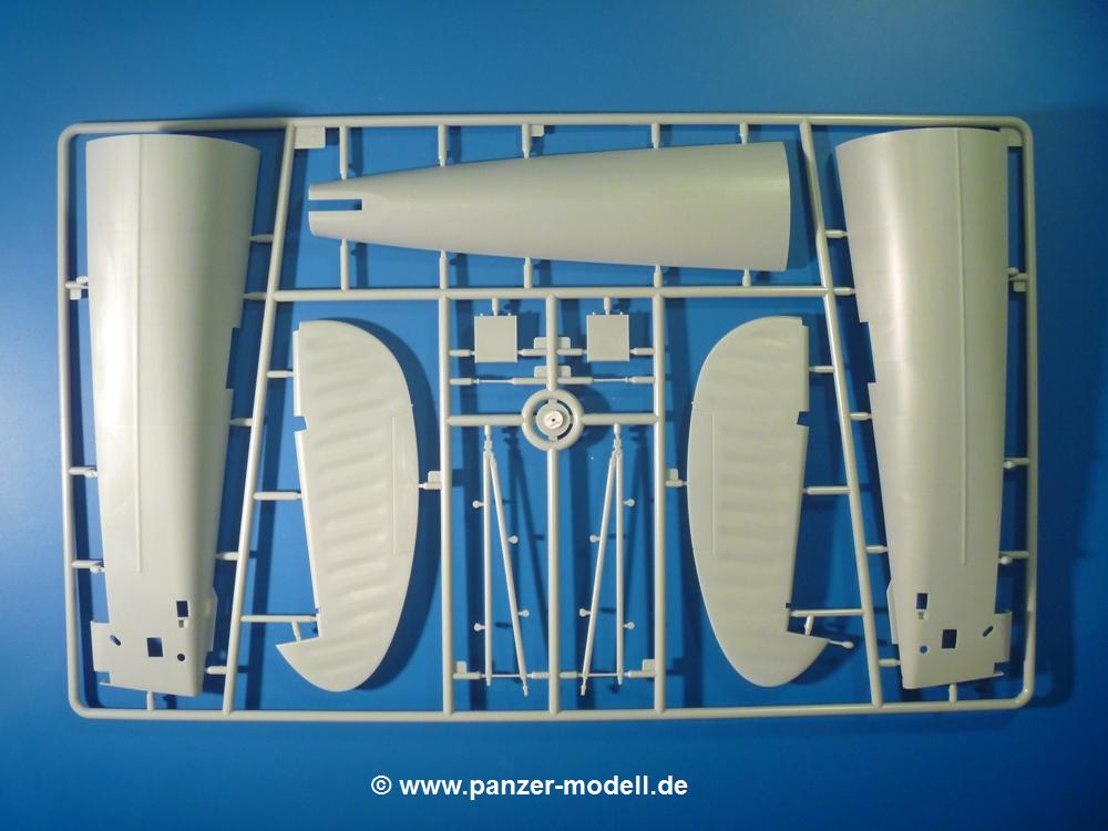 - Spritzling A (1x): Aussenhälften und Dach der Hecksektion, Seitenruder, Stützstreben Höhenleitwerk, Sitze und Stützen