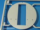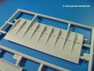 - Spritzling J (1x): Spanten der Hecksektion, Bodenplatte, Bodenrost, Seitenleitwerk, Steuerelement Seitenruder, Ablage (wahlweise aus PE-Teilen (siehe P)