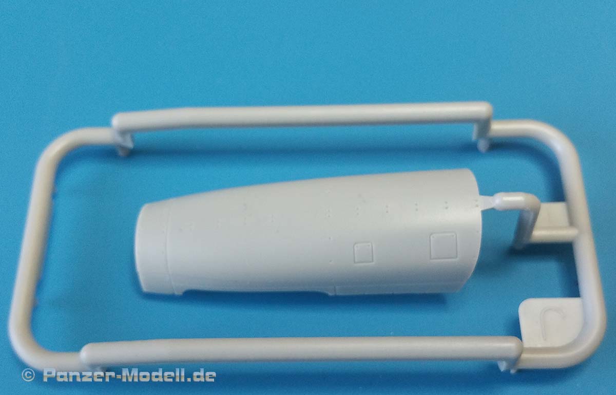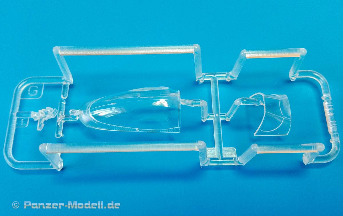 Und nun kommt das Sorgenkind, die Cockpithaube. Diese hat vom Guss her eine perspektivische Verzerrung. Aber das bekommen die Herrschaften aus China mit Sicherheit noch in den Griff. Am Seitenruder auf der Backbordseite wäre auch eine große Sinkstelle auszumerzen.