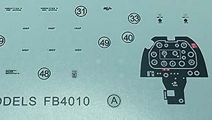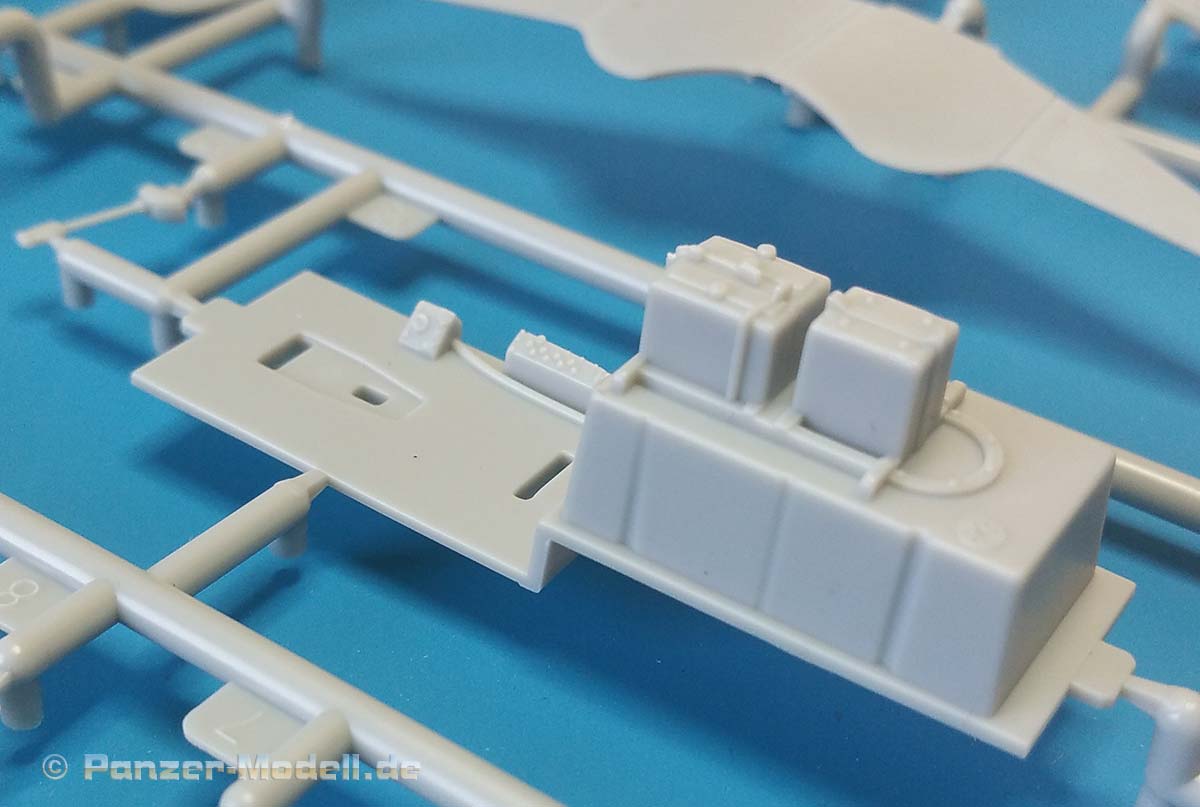 Kommen wir mal zum Cockpit. Es ist alles da, was da hin gehört. Allerdings hätten die Details auf dem Instrumentenbrett, für meinen Geschmack, etwas schärfer gegossen sein sollen. Ätzteile gibt es leider nicht, die Sitzgurte sind angegossen. Gut, dass ist nichts, was sich nicht ändern lässt. Für das Instrumentenbrett ist ein Abziehbild dabei, man kann also entweder selbst bemalen, oder das Abziehbild benutzen. Mit etwas Mühe sieht beides hinterher super aus.
