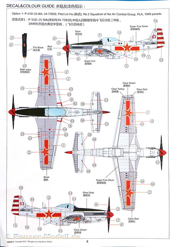 Es handelt sich um eine P 51 Mustang, die sowohl als D oder K Version baubar ist. Die Markierungen sind passend für die chinesische People's Liberation Army. So etwas sieht man hierzulande ja auch nicht so oft.