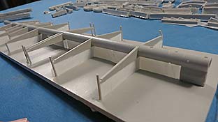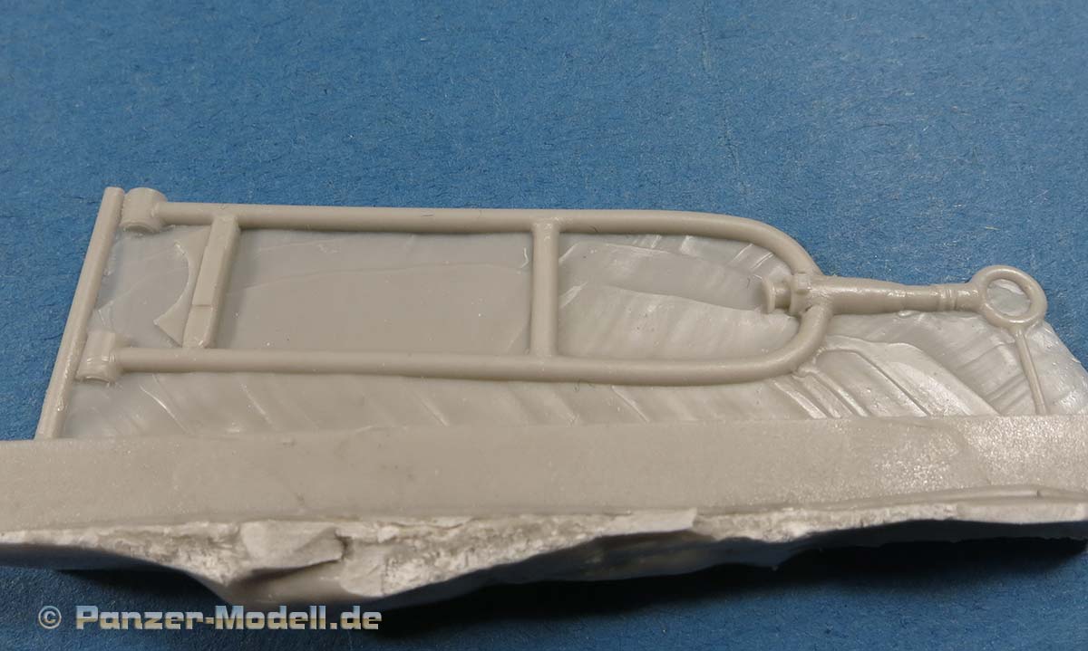 Die Unterkonstruktion der Ladefläche sieht gewaltig aus, nach dem Abtrennen des ganzflächigen Angusses und der hauchdünnen Zuführungen bleibt ein schönes, filigranes Gerippe auf dem die Ladefläche zum liegen kommt.