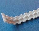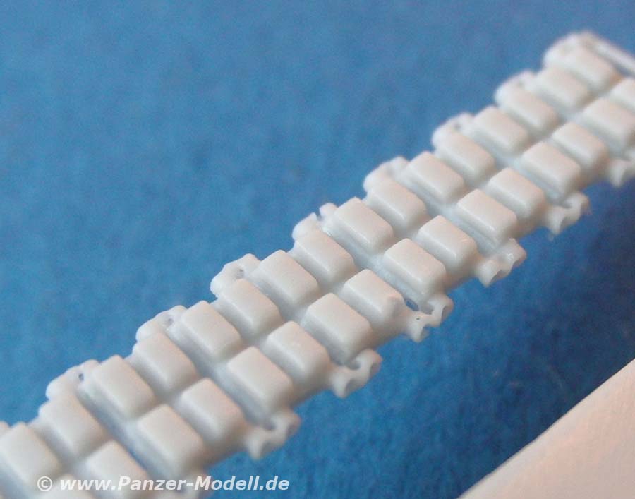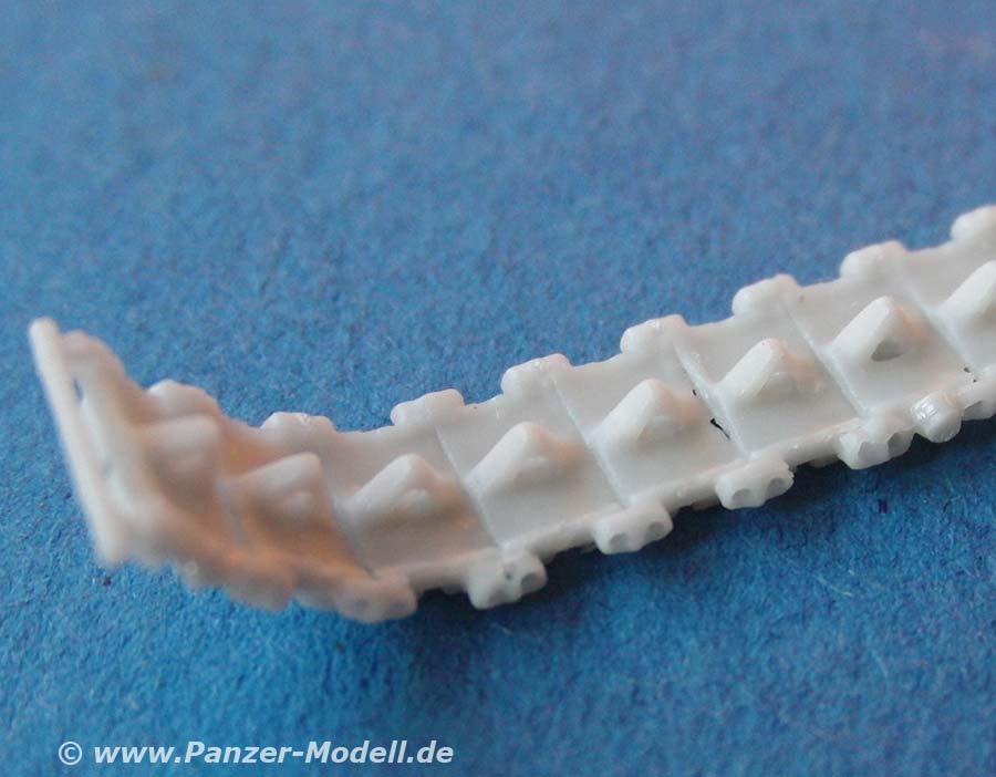 Die Kette mit ihren Segmenten ist auf den ersten Blick in dieser Art gewöhnungsbedürftig, da man erst ausprobieren muss, welche Segmente wo an das Modell gehören - durch die Art der Biegung in jedem einzelnen Segment, müsste das aber nicht allzu schwer sein. Der Guss ist durchweg gut, im vorliegenden Muster haben sich aber ein paar kleine Gussfehler, gerade an den Endverbindern eingeschlichen.