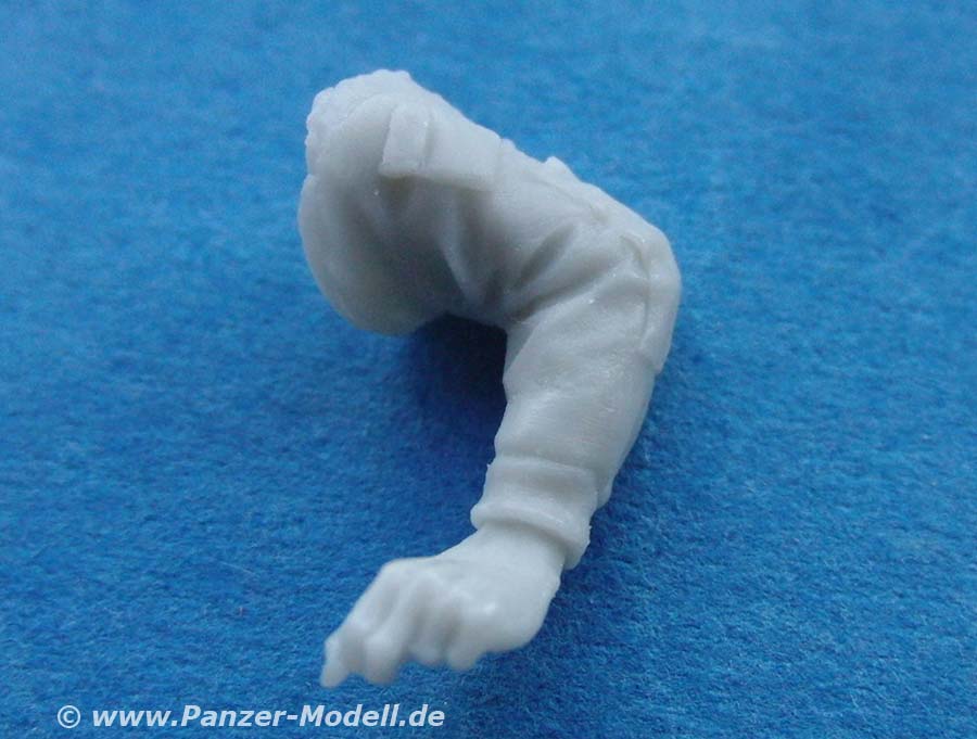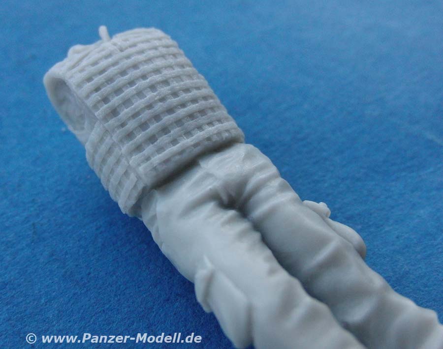 Die Detaillierung ist gut gelungen und stellt vor allem den aktuellsten Anzug der Bundeswehrsoldaten dar, die z.B. auf dem Boxer ihren Dienst tun, inklusive der neuen Sprechhaube. Die Schutzweste am Oberkörper wirkt ein wenig klotzig und die Erhebungen ein wenig zu aufgetragen, lässt sich aber in diesem Maßstab sonst nicht anders darstellen.
