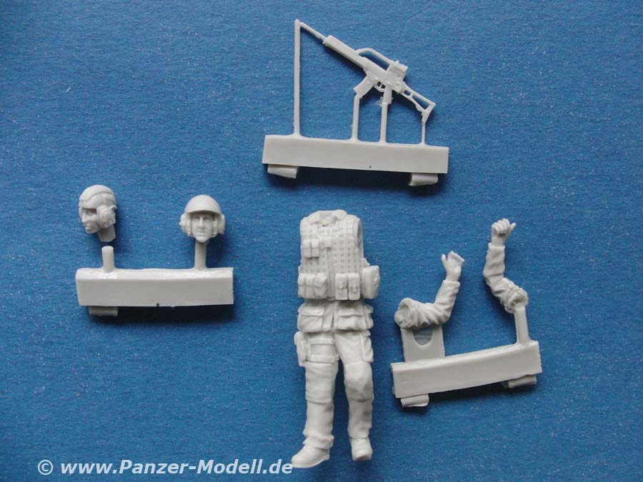 Im Set enthalten sind 6 Resinteile zum Bau einer Figur der Bundeswehr als Besatzungsmitglied, bzw. Infanterist in aktueller Ausstattung.