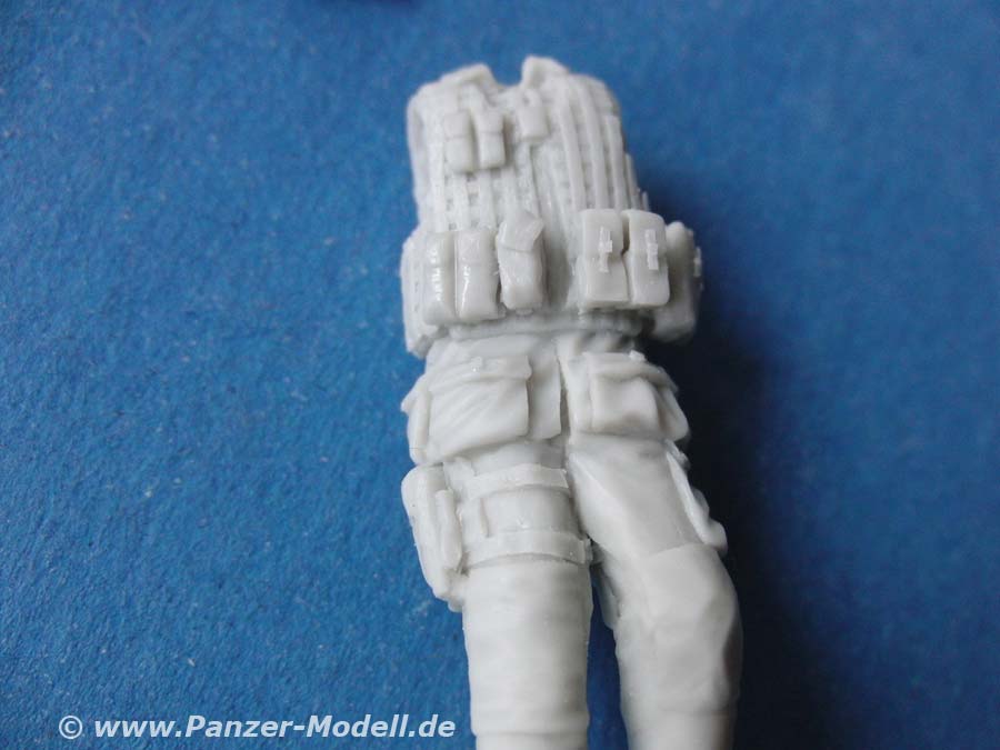 Die Details sind schön herausgearbeitet, insbesondere an der Waffe, der Schutzweste und den verschiedenen Taschen.