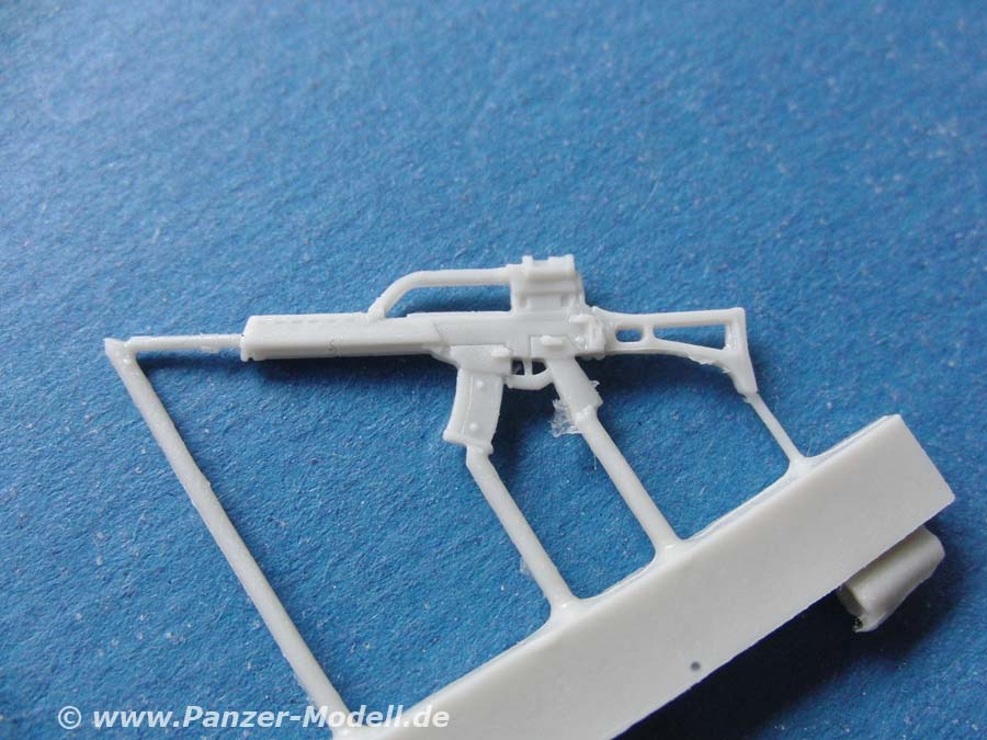 In der linken Hand kann die Figur das beiliegende G36 halten. Dieses ist sehr fein und detailliert gegossen.