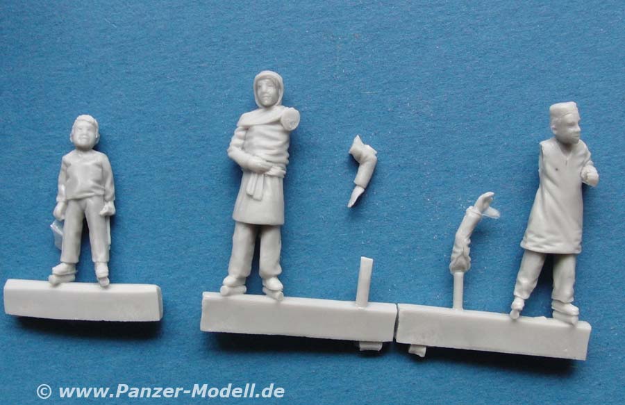 Kinderfiguren zu modellieren scheint nicht so einfach zu sein, denn entsprechende Sets sind in 1:35 rar gesät. Es scheint immer etwas schwierig zu sein hier die richtigen Proportionen und gesichtszüge zu erstellen, dass sie wirklich wie Kinder aussehen und nicht wie kleinwüchsige Erwachsene oder einfach zu klein modellierte Figuren.