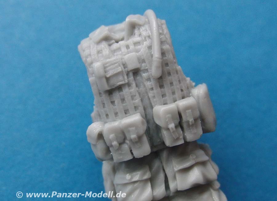 Der Guss der Figur ist sehr gut und die Uniform mit der Schutzweste und den Magazintaschen ist sehr fein. Auch das G36 mit der angegossenen Hand ist wie oben schon beschrieben sehr filigran und gut detailliert gegossen - nur an den feinen teilen etwas fragil.
