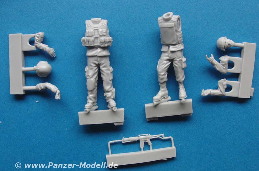 Insbesondere die Infanterie Figur weiss zu gefallen mit den fein detaillierten Uniformdetails und Magazintaschen. Auch das Gewehr ist sauber und schön detailliert gegossen.