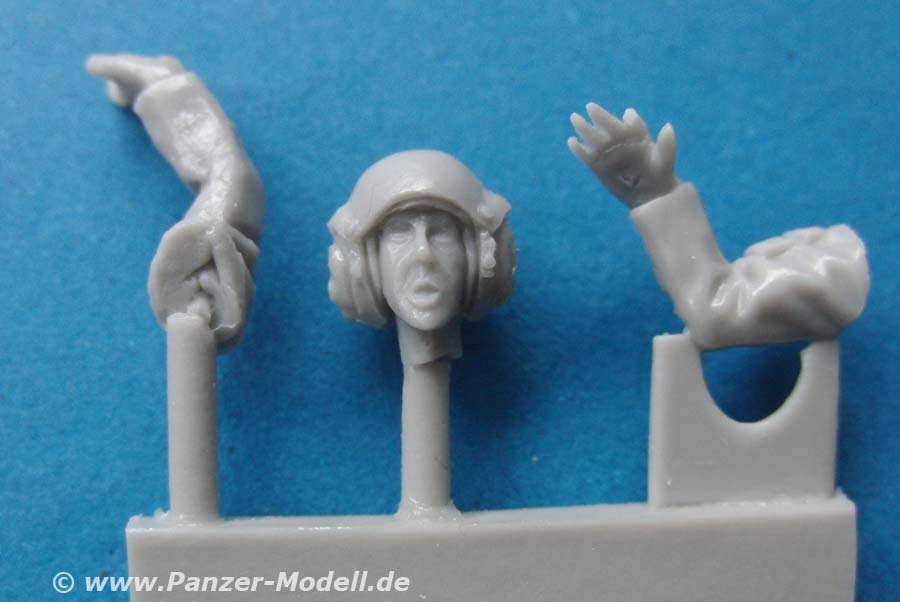 Die Figuren sind beide stehend modelliert - die Figur der Panzerbesatzung mit aufgestützter Hand und einer Hand am Lukendeckel oder etwas anderem in der Höhe. Die Infantriefigur ist stehend mit Gewehr in Vorhalte.
