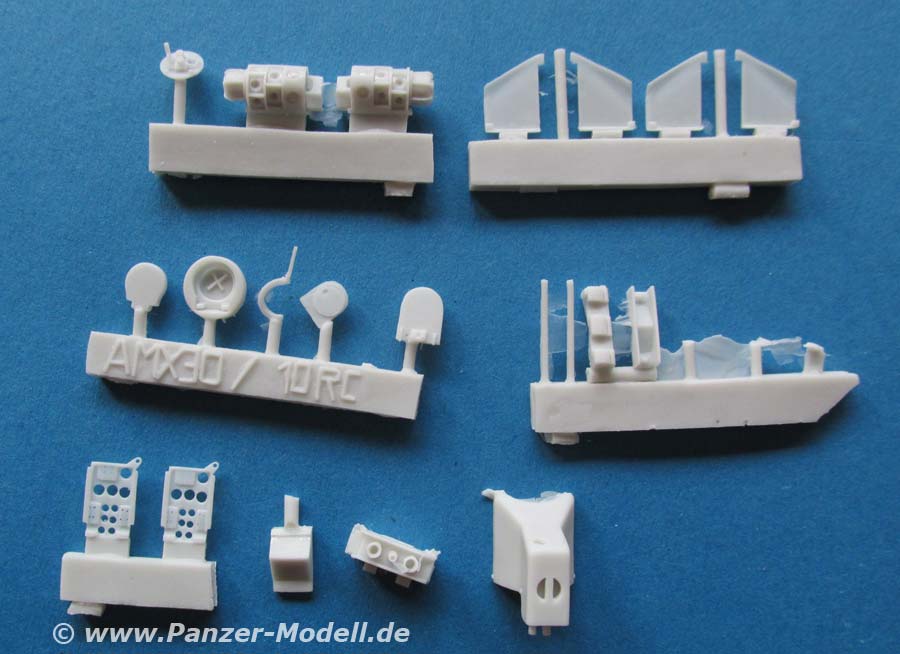 Im Set enthalten sind 20 Resinteile zum Bau von dem Schusssimulator zum Anbau an AMX30 und AMX10 RC.