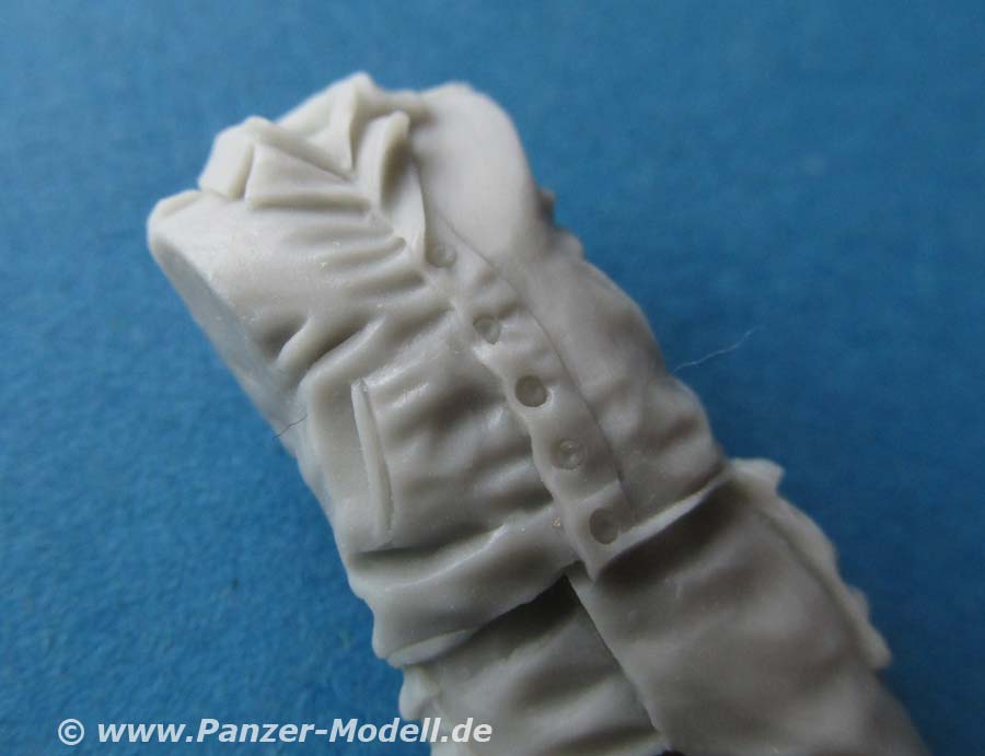 Die Details der Uniform sind schön heausgearbeitet mit realistischem Faltenwurf und netten Details, wie den Knöpfen an der Jacke oder auch den Gamaschen.