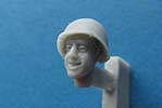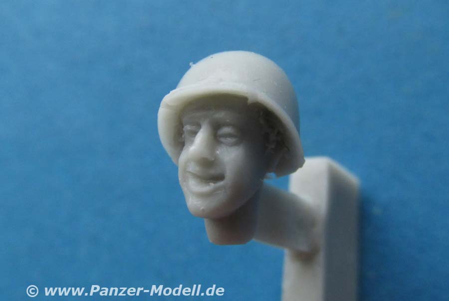 Der Kopf ist mit Helm dargestellt. Auch hier gefällt die Darstellung der Details sehr gut, der Helm wirkt extrem realistisch mit der Hinterschneidung. Das Gesicht ebenfalls gut und ausdrucksstark, wennacuh das fröhliche Grinsen mit einer schweren Granate in der Hand eine Idee unpassend wirkt - aber der Ausdruck an sich ist sehr gut gelungen.