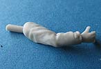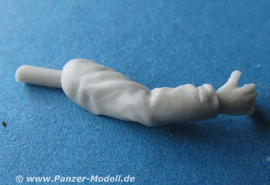 Die Figur ist bereits nahezu komplett in einem Stück gegossen. Lediglich der Kopf und beide Arme müssen vom Modellbauer noch angeklebt werden, sowie eine von zwei Granaten in die Hände geklebt werden.