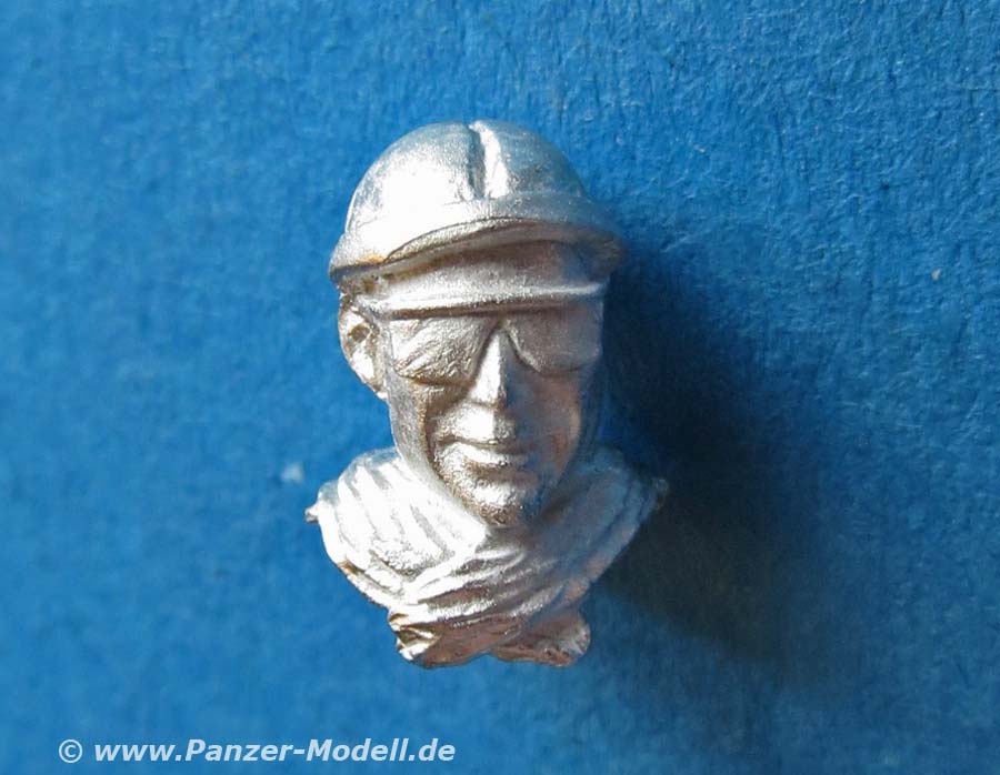 Der Kopf ist recht ansehnlich. Auch die Mimik des Gesichts mit den Details und dast Halstuch mit seinen Falten sind für Metallguss wirklich beachtlich gut gemacht.