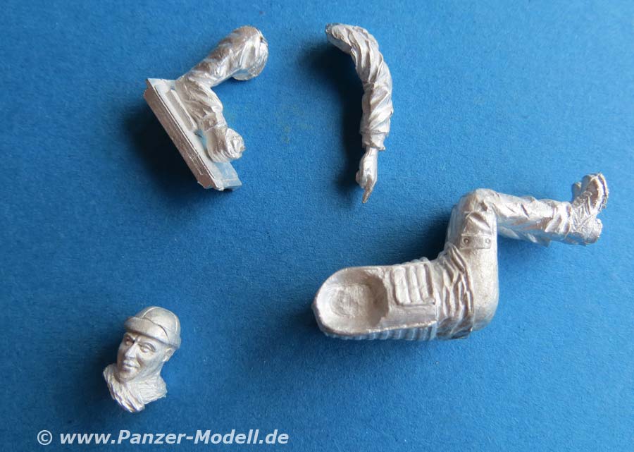 Arme und Kopfmüssen einzeln an die Figur geklebt werden. Der rechte Arm ist mit der hand gleich an ein Bedienelement der FLW mit Joystick mit angegossen. Der Faltenwurf der Uniform ist schön und realistisch modelliert und wiedergegeben.