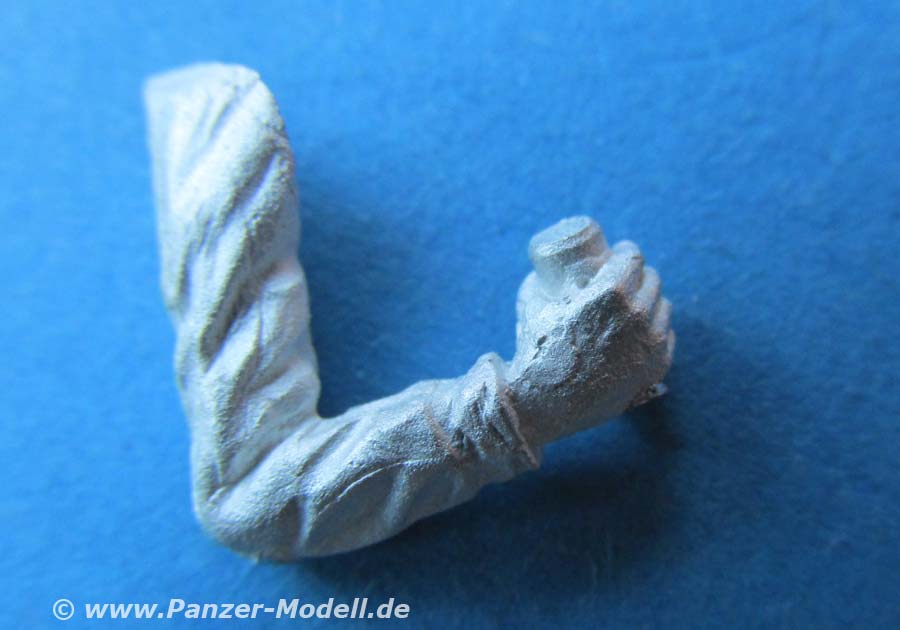 Arme und Kopf müssen einzeln an die Figur geklebt werden, wie auch ein Teil des linken Beins um den besonderen Winkel des Beins darstellen zu können. Der Faltenwurf der Uniform ist schön und realistisch modelliert und wiedergegeben.