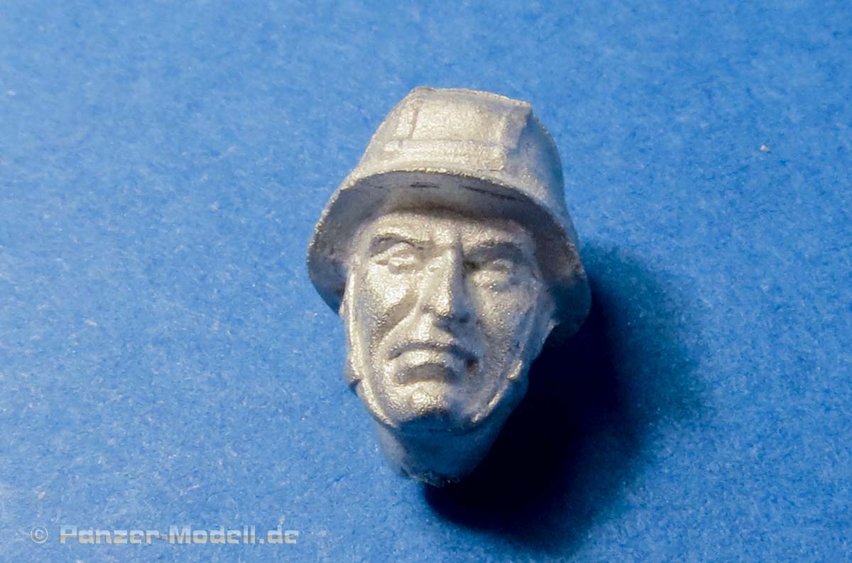 Der Kopf ist sehr gut gemacht mit realistischen Gesichtszügen und dem Helm mit Kinnriemen.