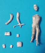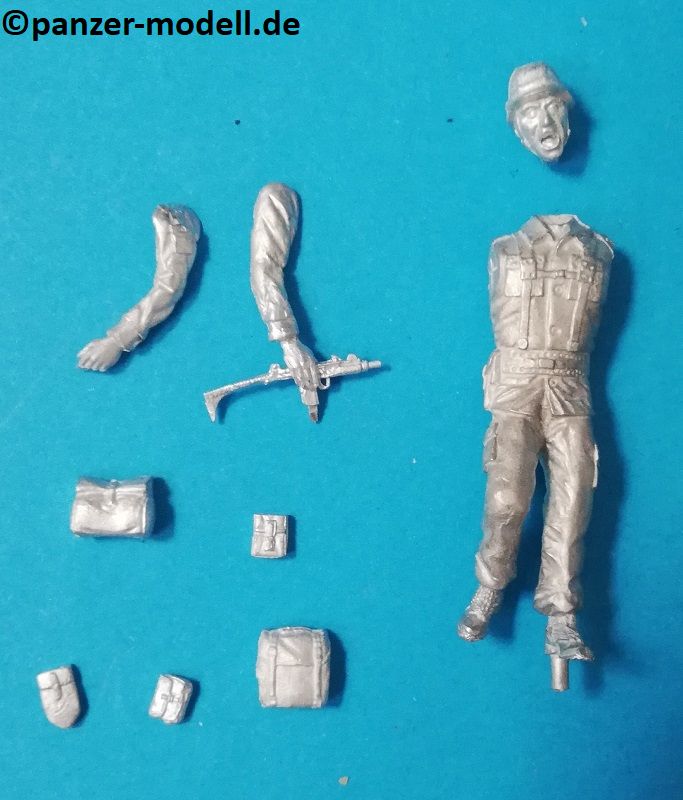 Der recht dünne Körper ist mit den Beinen komplett in einem Stück gegossen, es werden die Ausrüstung, die beiden Arme und der Kopf separat angebaut.