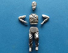 Der Faltenwurf und die Oberflächendetails wissen zu gefallen und sind recht ordentlich ausgearbeitet, wennauch metallgusstypisch stellenweise etwas soft. Auf der Brust befindet sich eine Sprechbox für die Bordverständigung mit entsprechenden Riemen umgehängt, die natürlich direkt mit angegossen sind. Der Kopf ist gut gemacht mit realistischen Gesichtszügen. Natürlich ist das Sprechgeschirr mit Kopfhörern und Mikrofon auch direkt mit angegossen. Der Kopf trägt keine Kopfbedeckung - die Darstellung der Frisur ist ganz ansprechend. Das Set kostet rund 9 Euro und bietet eine schöne Möglichkeit um die Fahrschulkabine mit Leben zu füllen. |