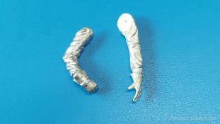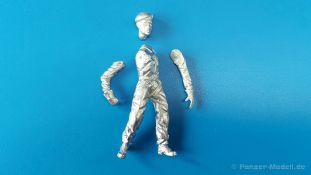 Die vorliegende Figur stellt einen Bergewart dar, der das Bergeseil eines Bergepanzers 2 mit beiden Händen führt/herauszieht. Die Figur besteht aus dem Körper, also Oberkörper inkl. Beinen, dem Kopf und den Armen. Die Bekleidung zeigt einen glaubhaften Faltenwurf. Der Soldat trägt eine Panzerkombi mit schräg gesetzten Reißverschlüssen der Brusttaschen und der Rückentasche für den Bergegriff, die deutlich zu erkennen ist. Er trägt kein Koppel über der Kombi, aber das Hüftzugband ist deutlich eingezogen (figurbetont). Die Hosenbeine gehen über die Schnürstiefel. Die Abdeckung der Reißverschlüsse der Unterschenkeltaschen sind gut sichtbar. Die Schnürung der Stiefel ist vorhanden. Sogar die Stiefelsohlen weisen ein Profil auf. Die Arme sind so gestaltet, dass die Figur das Bergeseil (nicht enthalten) von oben greifen kann. Finger und Daumen sind entsprechend gut gestaltet. An den Händen trägt er schwere Arbeitshandschuhe. Die Gesichtszüge und der Haaransatz sind deutlich getroffen. Auf dem Kopf sitzt das typische Barrett mit dem entsprechenden Barrettabzeichen. Die Oberfläche weist eine leicht raue Struktur auf, die Metallguss so eigen ist, aber nach Bemalung wird das nicht mehr auffallen. Der Faltenwurf und die Oberflächendetails sind recht schön. Hier und da findet sich feiner Gussgrat, der sich leicht entfernen lässt. Bergeszene voraus! Zwar zielt DOLP mit seiner Figur auf die letztens erschienenen Bergepanzer 2, aber zu einem Bergepanzer 1 (M88A1G) sollte sie auch gut passen.Die Figur ist für ca. 9 EUR auf dem deutschen Markt erhältlich. |