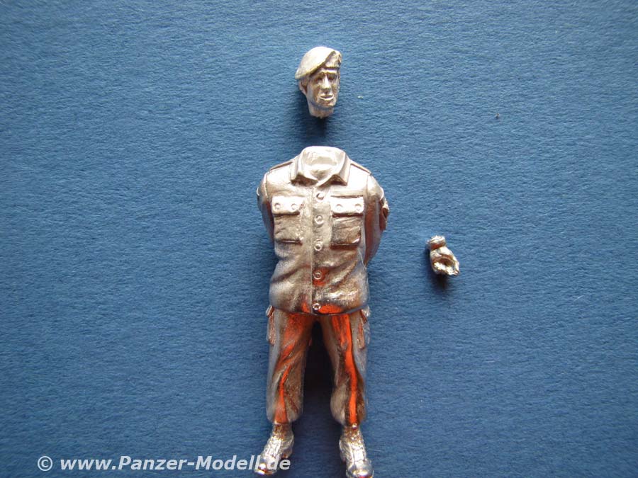 Dieses Set beinhaltet eine stehende Figur in der Pose, wie man sie von höherrangigen Soldaten gewohnt ist. Die Figur besteht aus nur 3 Teilen, dem Körper, der nahezu komplett ist, sowie einer einzelnen Hand und dem Kopf.