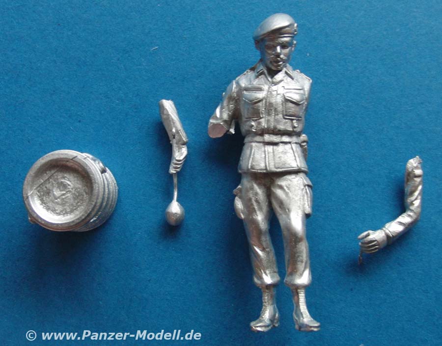 Diese Figur ist wie gewohnt in Metall gegossen und recht schön dargestellt mit dem Anzug der Ära vor flecktarn. Schön dabei hier die Darstellung eines "typischen" Essenausteilers im felde - wer zur olivgrünen Zeit beim Bund war, wird genau diesen Typ noch live vor seinem geistigen Auge haben.