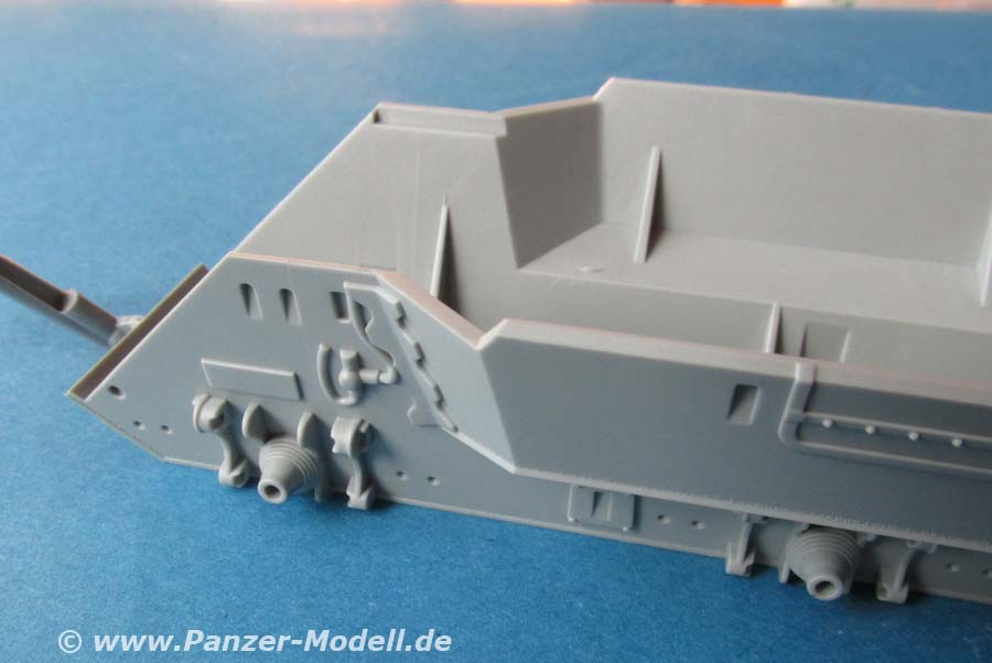 Die Qualität der Teile ist sehr gut und die Details sehenswert. Ober und Unterwanne werden mit nur wenigen Zusatzteilen ausgerüstet, bieten ansonsten aber nette Details wie durchbrochene Rippen, Schweißnähte und Bolzenköüfe.