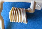 Die Kette liegt in zwei Kettensträngen aus DS Plastik vor. DS Plastik ist weich, wie man es von Vinylketten kennt, die Details sind hier in der Regel aber besser und schärfer und DS Plastik lässt sich mit ganz normalem Plastikkleber verkleben. Die Kettenglieder sind wirklich sehr schön und sauber und ohne Angussstellen oder Auswerfermarken gegossen, die einzelnen Kettenglieder sind durchbrochen, d.h. von Glied zu Glied sind diese tatsächlich nur an den Endverbindern und Mittelverbindern verbunden und nicht am Kettenkörper, die Führungszähne sind auch direkt mit angegossen und sind sehr schön gemacht.