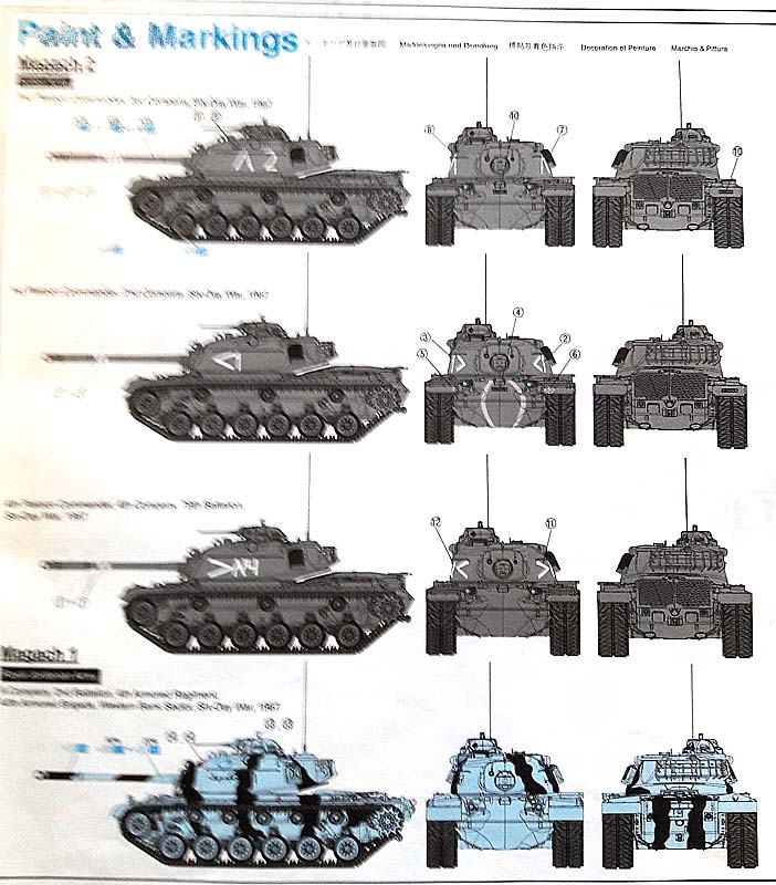 IDF Magach 1 &2 Battle Tank Middle East War Series 01 Zum kommenden 50ten Jahrestag des 6-Tage-Krieges von 1967 kommt von Dragon eine neue Serie von Fahrzeugen aus den Nahostkonflikten. Wen wundert es da, dass es mit dem Modell einer bzw. zweier M48 Varianten startet. Dragon hat bereits 2 Versionen des M48A3 aus dem Vietnamkonflikt im Angebot, und kürzlich erschien der M48A1. Basierend auf diesem Modellen wurde nun ein 2 in 1 Kit entwickelt , welches Teile des M48A1, des M48A3 und ÜBERRASCHUNG neuentwickelte Teile für einen M48A2 enthält. Der Magach 1 war im Sprachgebrauch der Zahal der M48A1, der Magach 2 dann der M48A2. Die ersten 40 Magach 1 wurden aus Beständen der Bundeswehr Anfang der 60er Jahre im Rahmen eines Geheimgeschäftes an die Israel Defence Force geliefert als dieser Deal bekannt wurde, sprangen die USA ein und lieferten überzählige M48A1 und M48A2 aus ihren Arsenalen. Weitere M48A1 wurden dann von Jordanien im 6-Tage-Krieg erbeutet, und in die Zahal eingegliedert. Dragon hat in die zum bersten gepackte Box beide Versionen gepackt, und auch noch viele Teile der M48A3 sind vorhanden, so dass sich die Grabbelkiste freuen kann. In 16 Bauschritten wird man zum fertigen Modell gebracht dabei muss man aber höllisch aufpassen, dass man auch ja die richtigen Teile für die gewünschte Version erwischt. Wie schon fast üblich bei Dragon, sind die einzelnen Bauschritte teilweise heillos überfrachtet hier den Überblick zu behalten, kann schon schwerfallen. Die einzelnen Bauteile sind allerdings von exzellenter Qualität Grate und Auswerferstellen sucht man vergebens oder an später nicht sichtbaren Stellen. Ein offensichtlicher Kritikpunkt ist das Fehlen der Öffnungen im Treibrad, die dazu dienten dass sich kein Schlamm darin festsetzen konnte leider ein Merkmal aller Dragon M48 Bausätze. Auf der sehr positiven Seite haben wir die Wahl zwischen zwei Oberwannen mit 3 oder 5 Stützrollen, 2 verschiedenen Kanonenabdeckungen aus Vinyl oder wahlweise das blanke Schild aus Plastik und 2 verschiedenen Mündungsbremsen. Die Ketten liegen aus DS Material bei und sind sehr schön strukturiert diese machen beim M48 auch Sinn, da diese sehr straff gespannt waren. Ebenfalls enthalten sind sinnreiche Fotoätzteile und ein Stück Litze zur Darstellung von Schleppseilen. Es liegen 4 Decaloptionen bei - 3 Israelische Magach 2 aus dem 6-Tage-Krieg in Sandfarben (welche man sich laut Bauplan aus Gunze Farben selber Mischen soll da gibt es genügend Alternativen von anderen Herstellern) und einem jordanischen Panzer aus dem 6-Tage-Krieg in Zweifarb-Tarnung (Hier gilt für die Farben das Gleiche). Der jordanische Panzer wird hier als Magach 1 bezeichnet, was historisch gesprochen nicht richtig ist zu dieser Zeit wurde er in Jordanien noch als M48A1 bezeichnet. Mein Fazit: Man erhält viel Gegenwert für sein Geld und kann ein sehr gut detailliertes Modell schon direkt aus der Schachtel erstellen sei es ein Fahrzeug aus dem Nahost Konflikt oder mit anderen Decals einen M48A2 einer anderen Nation zum Beispiel die Bundeswehr Urversion oder einen US Panzer….. Absolute Kaufempfehlung