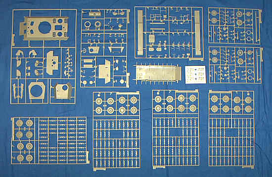 Das Modell kommt mit nicht weniger als 9 Spritzlingen, der Wanne und zwei kleinen Plexiglasbögen daher. Die