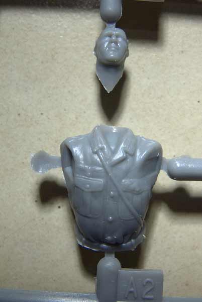 Alle vier Figuren tragen Wehrmachtsuniform und Stahlhelm. Als Posen haben wir hier 2 gehende Soldaten, einen knieenden und einen liegenden. Als Ausrüstung ist den Figuren beigegeben: Persönliche Ausrüstung wie Gasmaskenbehälter, Klappspaten, Trinkflasche, kleine Kampftasche und Pistolen. Desweiteren Munitionstaschen, zwei Karabiner und zwei Panzerbüchsen (PzB39). Die Teile sind fein detailiert und machen insgesamt einen guten Eindruck. Die Kartonrückseite zeigt den Zusammenbau der Figuren sowie Bemalung und Anbringen der Ausrüstungsgegenstände.