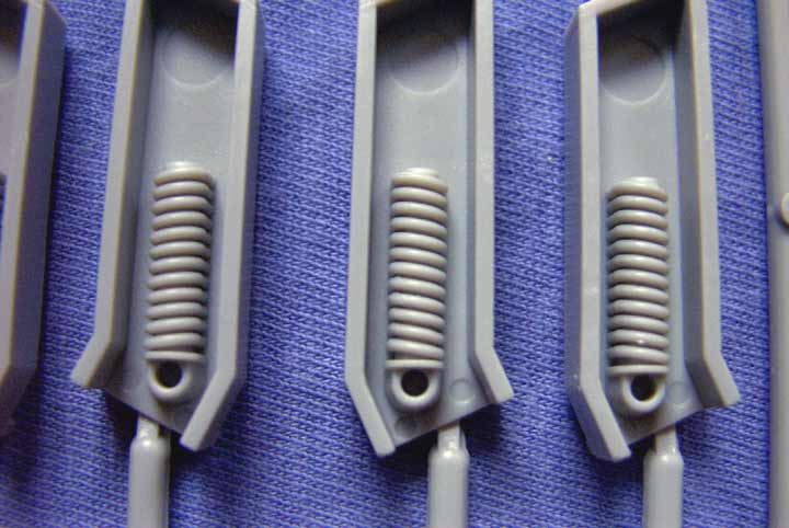 Alles in allem wissen die Ausstattung Teile sehr zu gefallen. Sehr feine und schöne Details, wie z.B. die perforierten Gummibandagen der Laufräder, Federlemente, usw.. Die Ätzteile können optional eingebaut werden, denn es sind auch dementsprechende Plastikteile, die auch nicht übel aussehen (und die Arbeit erleichtern), im bausatz enthalten.
