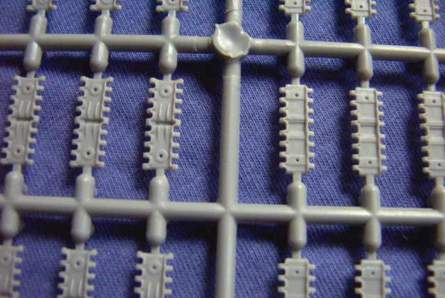 Die Kette besteht aus Einzelkettengliedern, die aber leider leichte Auswurfstellen sichtbar tragen. Dies gilt auch für die Klappen (Getriebe, Motor, Turm) auf der Innenseite. Wer sie also geschlossen darstellt hat kein Problem. Der Turm wird mit rudimentärer Inneneinrichtung ausgestattet, sprich die Kanone im Turm ist relativ detailiert dargestellt zusammen mit den beiden Sitzen der Turmbesatzung.