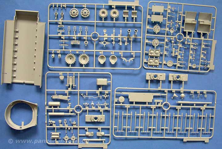 Der Karton erschlägt einen nahezu mit der Fülle an Material. Sämtliche Teile sind extrem gut und sehr schön detailiert ausgeführt. An allen wichtigen Stellen finden sich sehr gute und sauber dargestellte Schweissnähte, alle Plastikteile sind fein und detailiert. Dies zwar auf Kosten vieler Gießnasen, die man pro Teil entfernen muss, aber für DIE Qualität nimmt man gern etwas mehr Arbeit in Kauf.