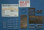 Die Decals sind auf 2 Bögen und geben die Möglichkeit vielfältiger Markeirungsmöglichkeiten. In der Bauanleitung werden ganze 10 verschiedene Bemalungs- und Markierungsmöglichkeiten dargestellt. Zwei Vorschläge für die frühe Version an der Ostfront, fünf Vorschläge für die späte Version an Ostfront und Balkan, sowie 3 Vorschläge der Afrikaversion. Einziges Problem, das ich sehe, sind die großen Turmnummern, die über Sichtluken anzubringen sind, was leider kaum anständig zu bewerkstelligen ist - Trockenreibebilder wären hier die Lösung, abe rman kann nicht alles haben.