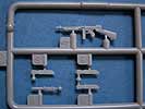 Wenden wir uns dem Zubehör zu - man könnte kurz sagen, hier ist nichts vegessen worden ... eine Unmenge der verschiedensten Waffen und sogar ein fein detailierter M1A1 Flammenwerfer den eine Figur tragen kann und dieser sogar eine offene Mündung aufweist. Die Riemen für die Gewehre liegen als Ätzteile vor, wie auch die Kinnriemen der Helme. Desweiteren erfreuen uns haufenweise Magazintaschen, Ka-Bar Messer, Munitions-Clips, Trinkfalschen, Pistolenholstr, usw..