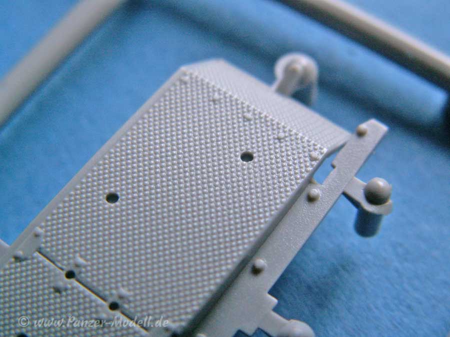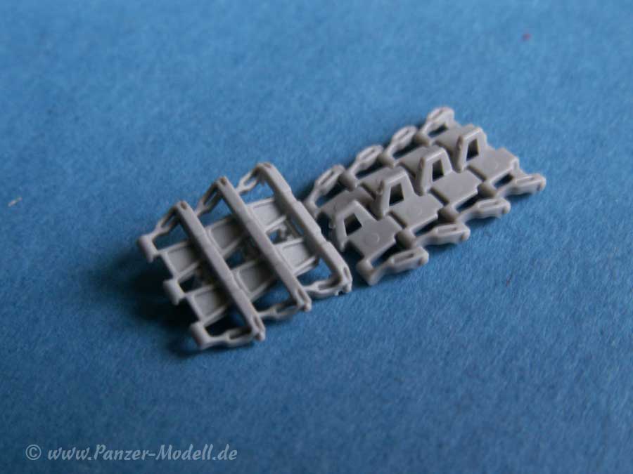 Apropos Kette - auch hier legt Dragon die benutzrfreunliche Magic Track bei, die bereits geschnitten und versäubert ist und sofort verbaut werden kann. Einzig ein paar Auswerferstellen auf den Innenseiten sind ärgerlich, aber es sind eh nur davon ein paar am Endprodukt zu sehen. Man muss auch beachten, dass die Kette in rechte und linke Kettenglieder getrennt ist, die die Kettenbolzenenden an jeweils anderem Ende haben.