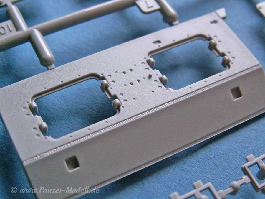 Die Teile an den Spritzlingen erfreuen das Modellbauerherz aufs höchste. Die Details sind hervorragend herausgearbeitet - als Beispiele sind hier nur z.B. die fantastischen Schweissnähte oder die Noppenstruktur der Kettenbleche genannt - hier hat Dragon wirklich sehr gute Arbeit geleistet. Auch die Laufrollen und Stützrollen sind neu und von erstaunlich genialer Detailqualität, wie man sie bei Panzer III Laufwerken bislang nicht hatte - auch der Schriftzug auf dem Gummi vom Hersteller fehlt nicht, auch wenn es wieder die bekannte Pseudofirma "Continentau" ist, bei der man den letzten Buchstaben modifizieren müsste.