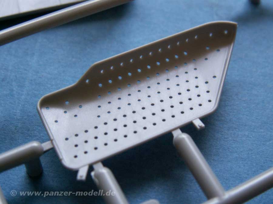 Das Motordeck mit den Platten für die Crew ist sehr genial gemacht - gerade der Heckkorb, der aus Metalldraht bereits als ein Teil fertig gebogen ist und die beiden seitlichen Lochplatten als Plastikteile - wirkt alles sehr gut!