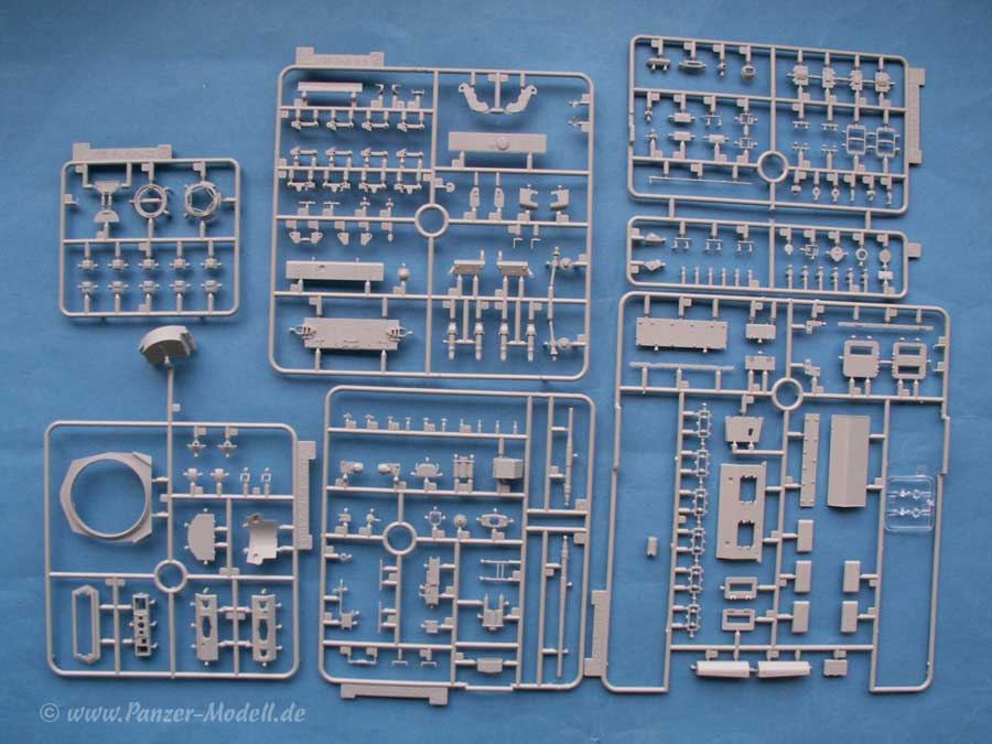 Zusätzlich stehen die entsprechenden Teile zur Verfügung um den Panzer mit der Zusatzpanzerung vorn darzustellen. Das kombiniert mit den beiden Kanonen macht schonmal vier Versionsmöglichkeiten.