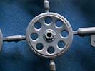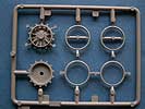 Eines der überarbeiteten Teile sind die Treibräder, die jetzt das richtige Aussehen haben und zudem extra verschiedene Gummierungen zum aufsetzen haben - laut Dragon die kreisrunden für unbenutzte und die kantig abgeflachten für gebrauchte Gummierungen. Außerdem wurden die äußeren Laufrollen verbessert mit feinen Beschriftungen auf den Gummierungen und verbesserten Details an der Lochfelge.