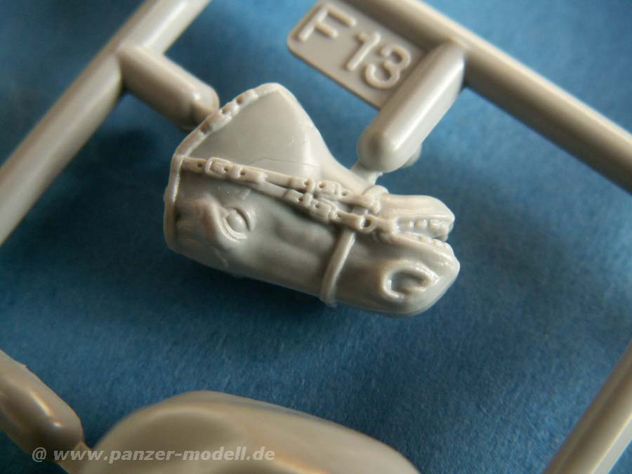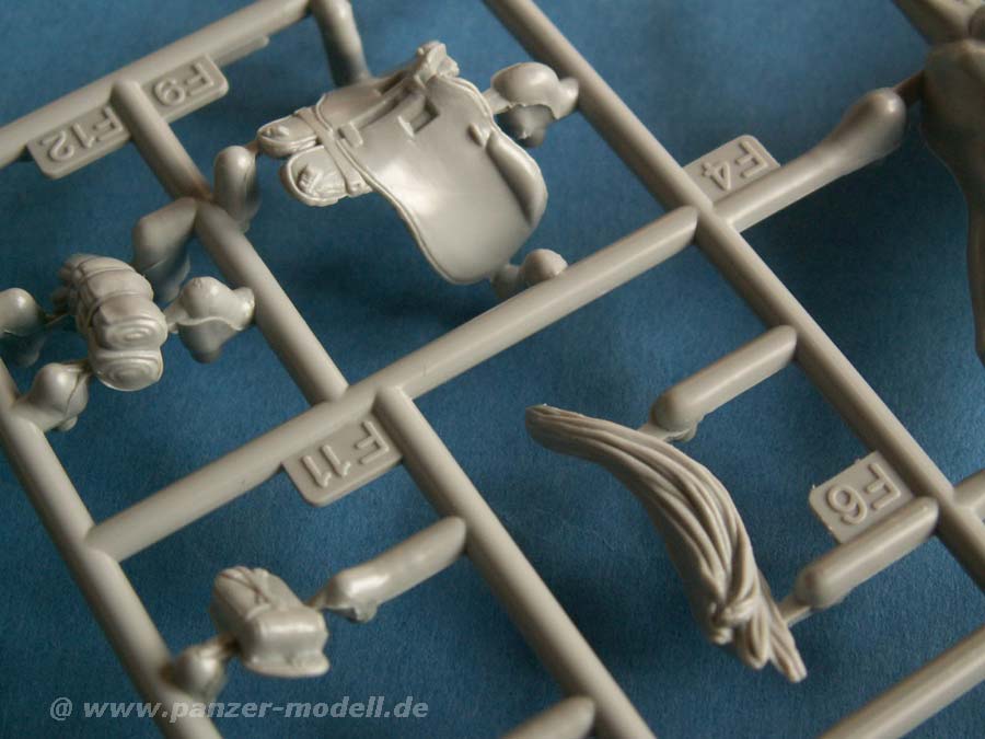 Die Qualität und Detailierung der Teile ist wahnsinnig gut, zumal es sich hier um Gen2 Figuren handelt - die Pferde haben Details, die einem Freudentränen in die Augen treibt - Mähnen, die Zähne, die Hufe - alles mit feinen Details. Dazu PE Teile wie Hufeisen, Steigbügel und Zaumzeug - herrlich!