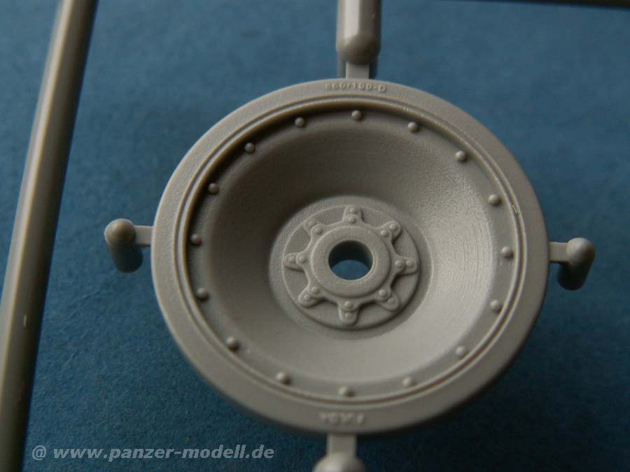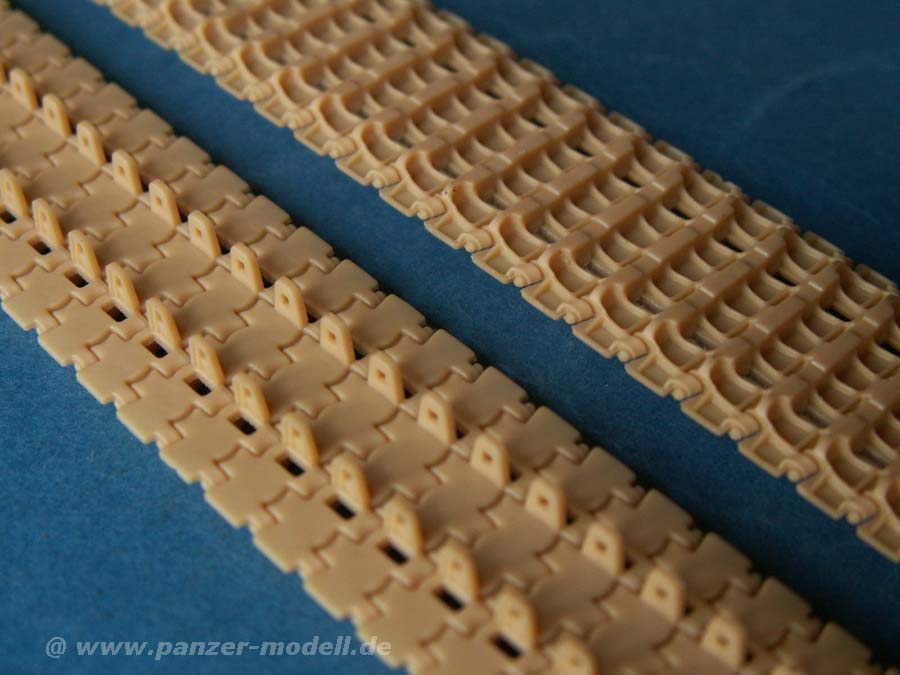 Interessant ist die Ausstattung des Bausatzes mit der DS Kette, die in einem Stück gemacht ist und dabei offene(!) Führungszähne aufweist - optisch der absolute Hammer und natürlich schnell aufzuziehen. Dafür muss man dann sehen, wie man den Kettendurchhang hinbekommt.