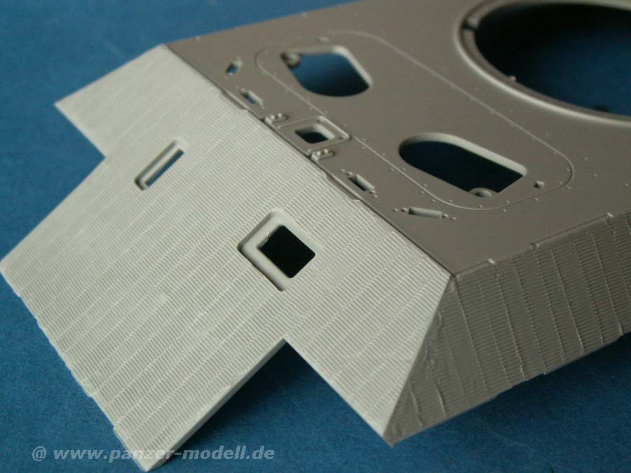 Das persönliche Highlight gleich nach dem aufgeprägten Zimmerit ist für mich die Beigabe der Schürzen aus dünnem PE Blechen - siese lassen sich hervorragend für Beschädigungen nutzen - modellbaufreundlicher gehts nicht mehr.